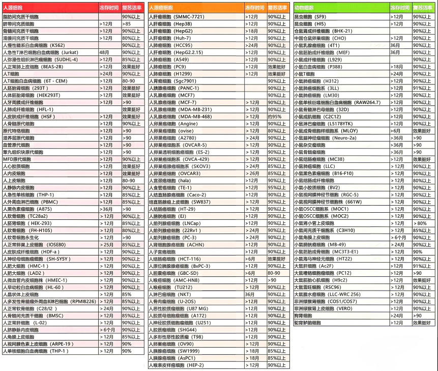 3. 初次使用本产品冻存的细胞类型,应测试保存时间和效果后再使用。