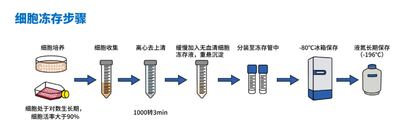 2.细胞在加入冻存液分装后,应减少在外存放时间,尽快移入到 -80℃ 超低温冰箱。