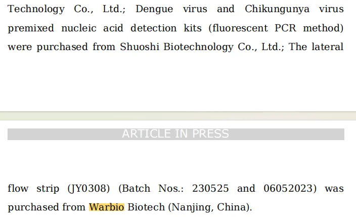 其中,使用了沃博生物warbio的产品,CRISPR双酶切检测试纸条(变色龙),货号JY0308.